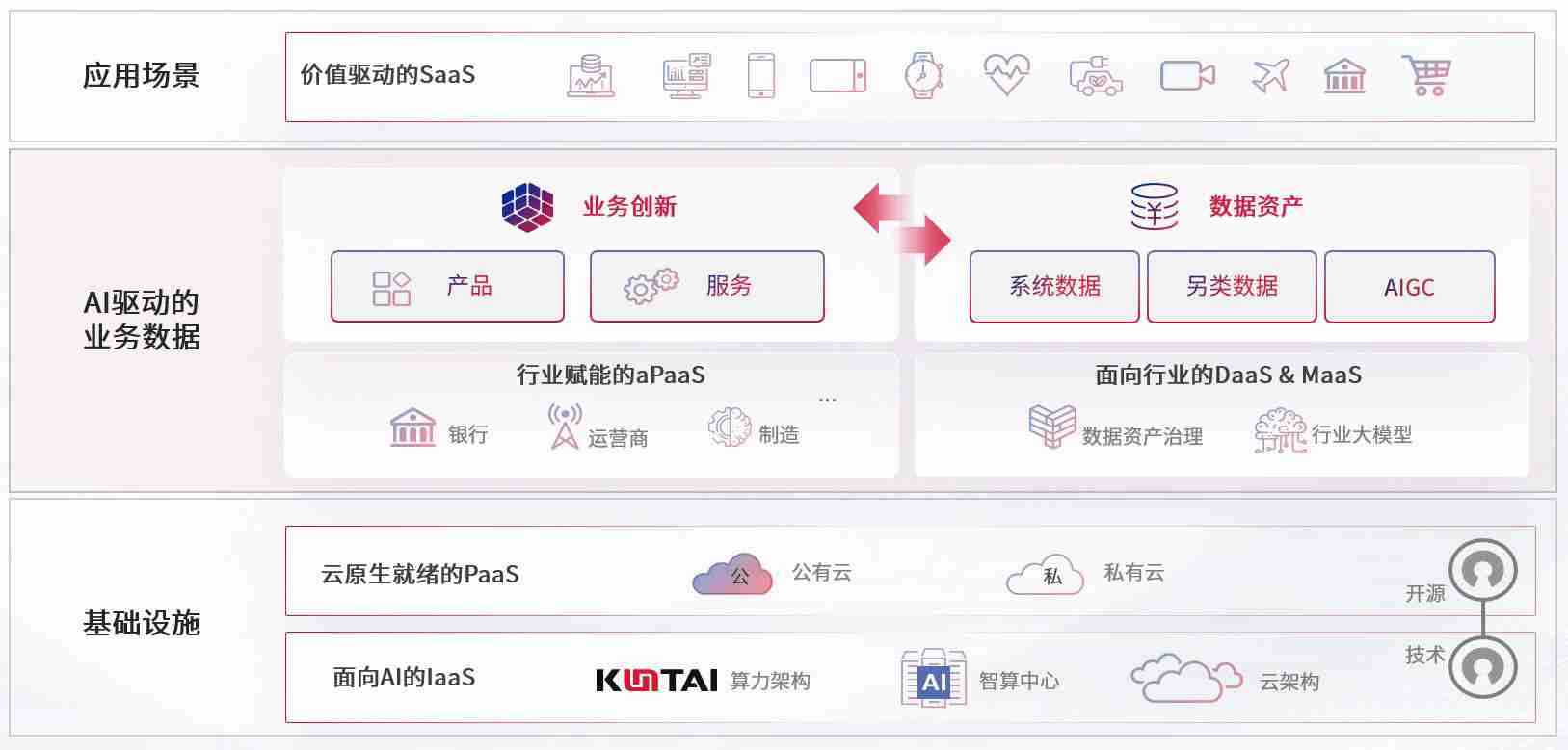 数字时代,,,围绕企业数字化转型的关键要素,,,,公海gh555000aa线路检测数码开创性的提出数云融合战略和技术体系框架,,,,着力在云原生、、、、数字原生、、、、AI原生和信创产业上架构产品和服务能力,,,,为处在不同数字化转型阶段的快消零售、、、、汽车、、、金融、、、、医疗、、、政企、、、教育、、运营商等行业客户提供泛在的敏捷IT能力和融合的数据驱动能力,,,构建跨界融合创新的数字业务场景和新业务模式,,,助力企业级客户建立面向未来的核心能力和竞争优势,,,全面推动社会的数字化、、、、智能化转型升级。。